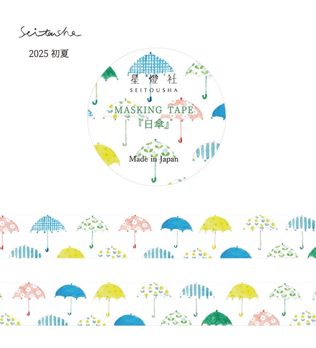 【星燈社】2025夏新作「日傘」マスキングテープ15㎜*5m