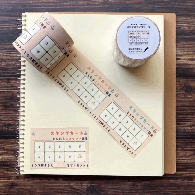 【きのこ社】スタンプカードメモマスキングテープ レトロ