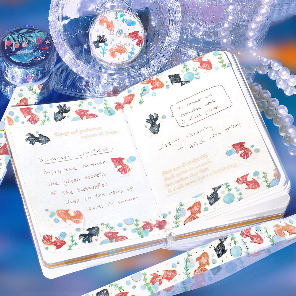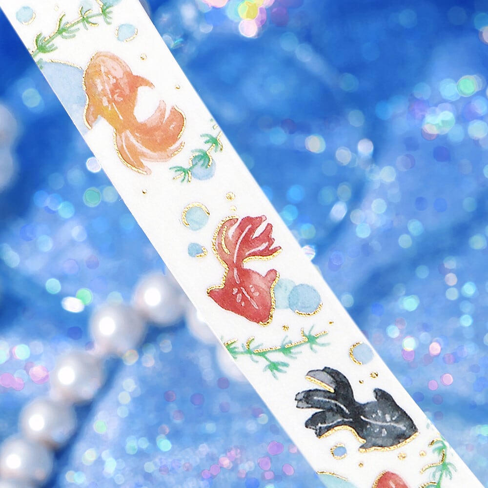 【BGM】「2025夏限定・金魚」マスキングテープ 箔押し15㎜*5m