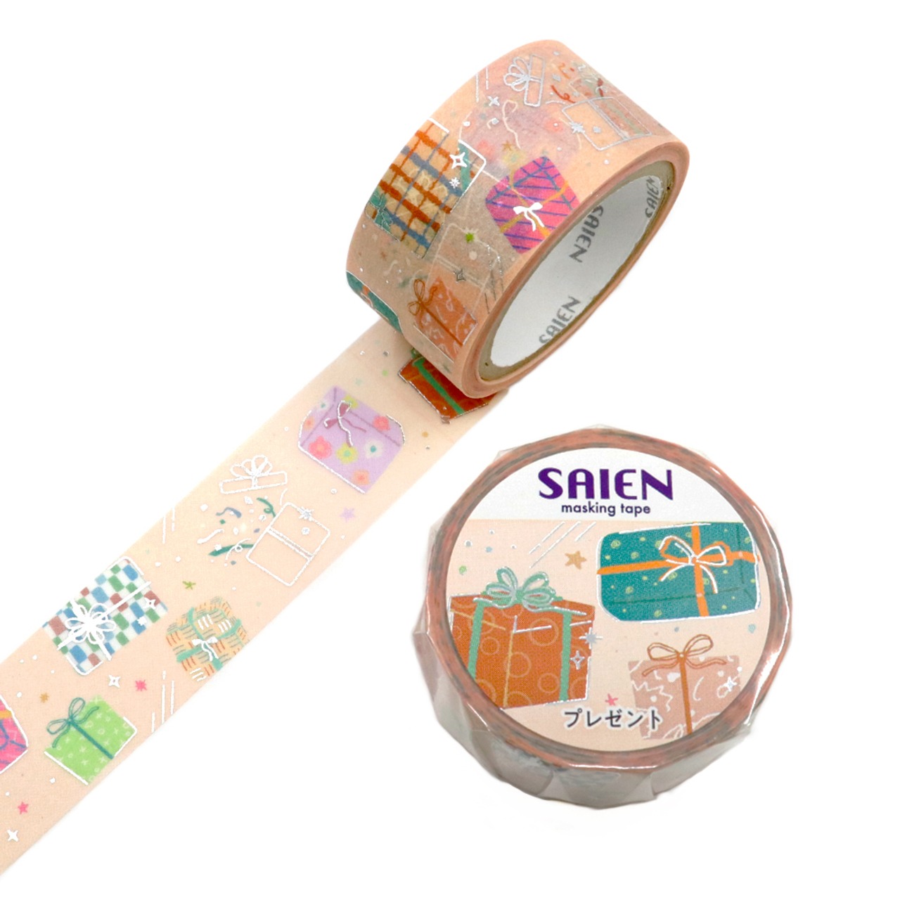 【SAIEN】2025冬限定「プレゼント」銀箔マスキングテープ20㎜×5m