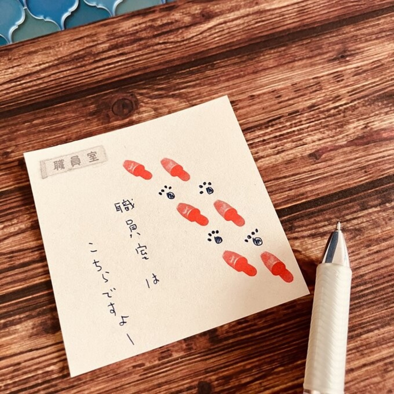 学校のスリッパと職員室のプレートで デザインしたメモ帳です。わら半紙に印刷しておりますので、レトロで懐かしい風合いです。