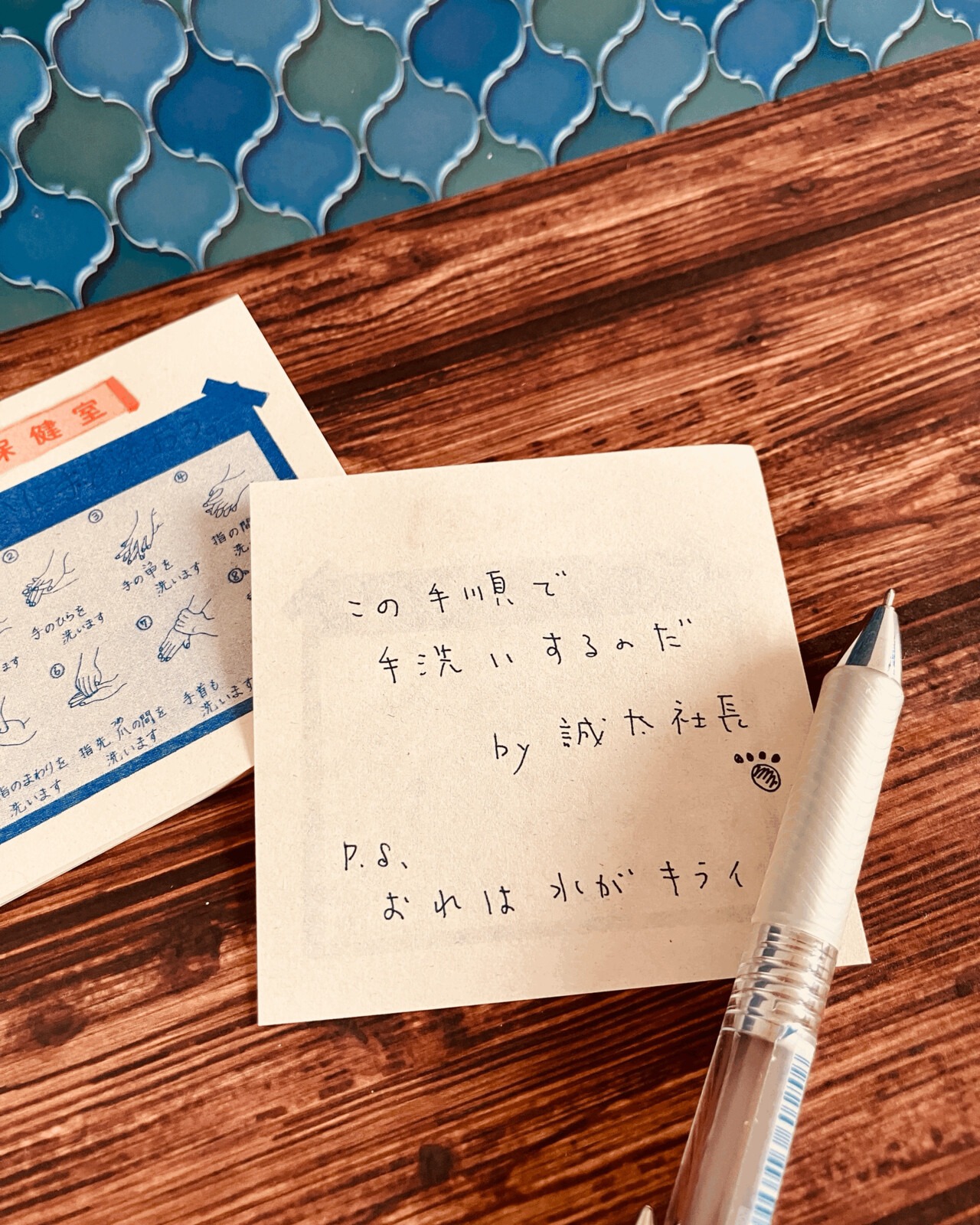 手洗いポスターをデザインしたメモ帳です。わら半紙に印刷しておりますので、 レトロで懐かしい風合いです。 裏面にメモを記入して下さい。