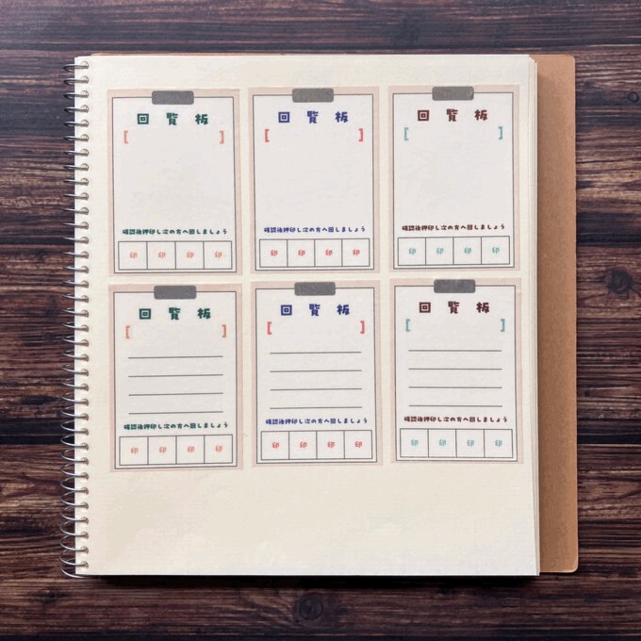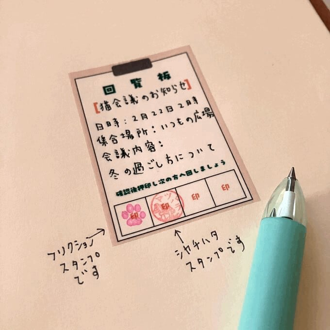 リアル回覧板の様にお知らせを記入し回していくもよし自分用に、タスクを書いて出来たらスタンプを押すもよし意外と色々使えるシロモノです