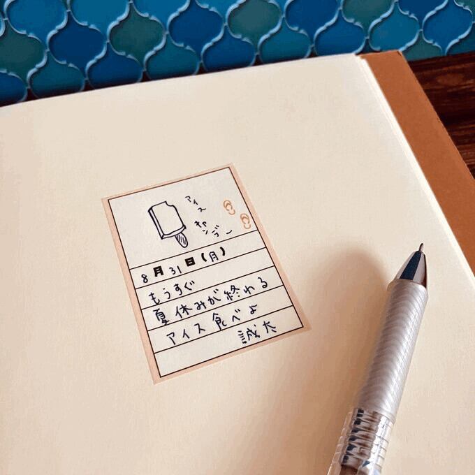 ミシン目入りで手で切ることが出来ます。貼って剥がせる特性を生かし、ノート以外の日用品などにも貼って使用して頂けます。