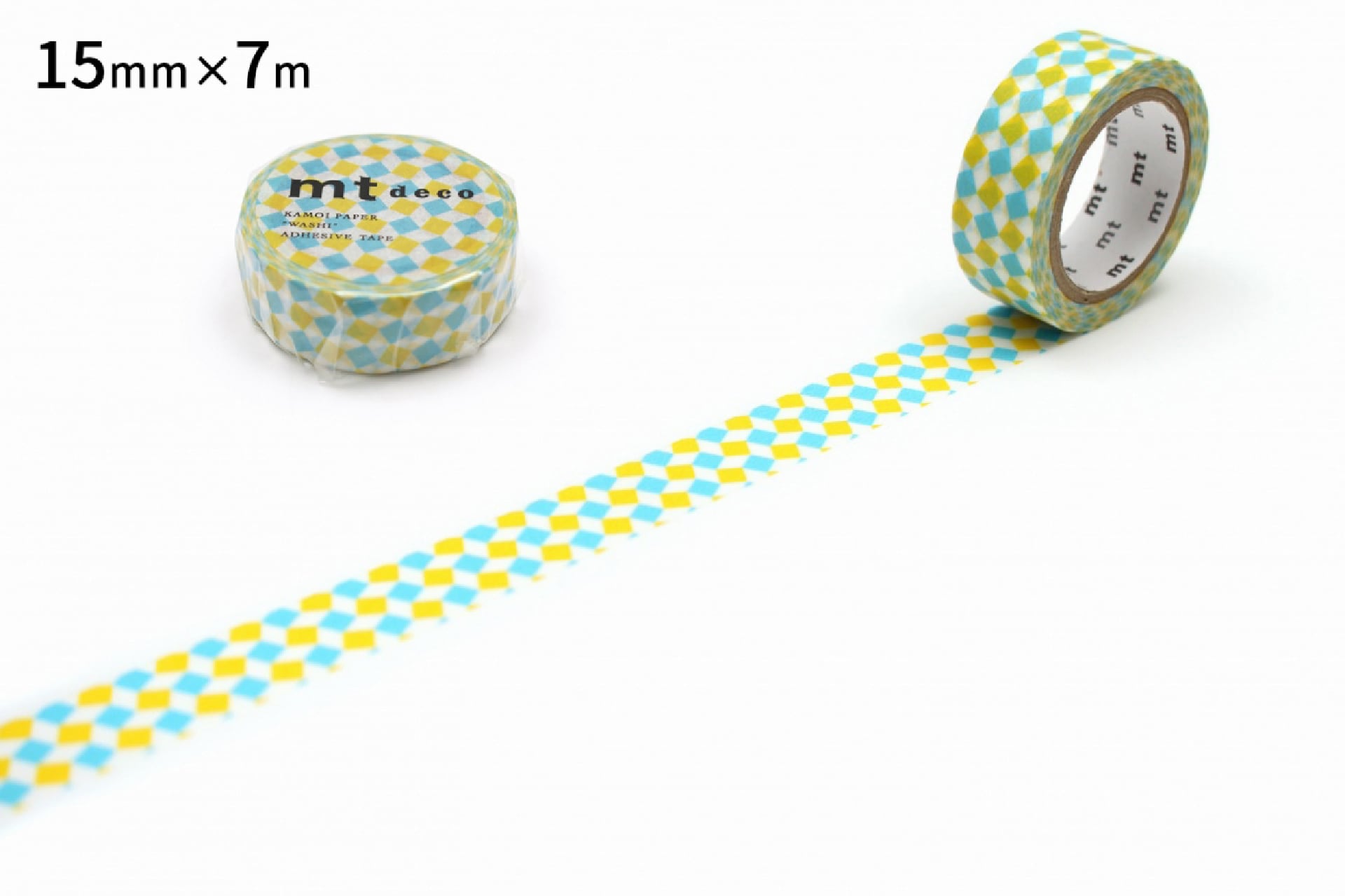 イエローを基調にしたスクエアが個性的な表情を作りだしている個性的なテープです。