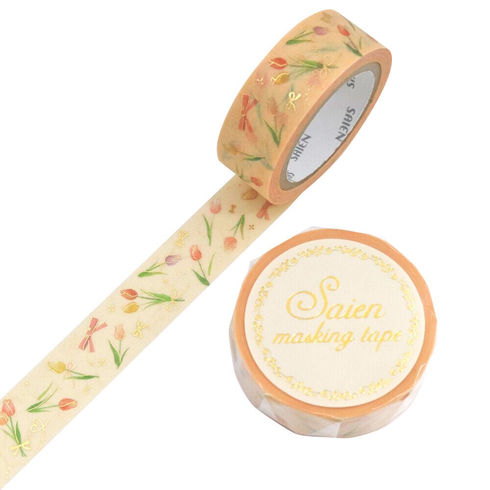 【SAIEN】2025春新作「チューリップ」金箔マスキングテープ15mm*7m